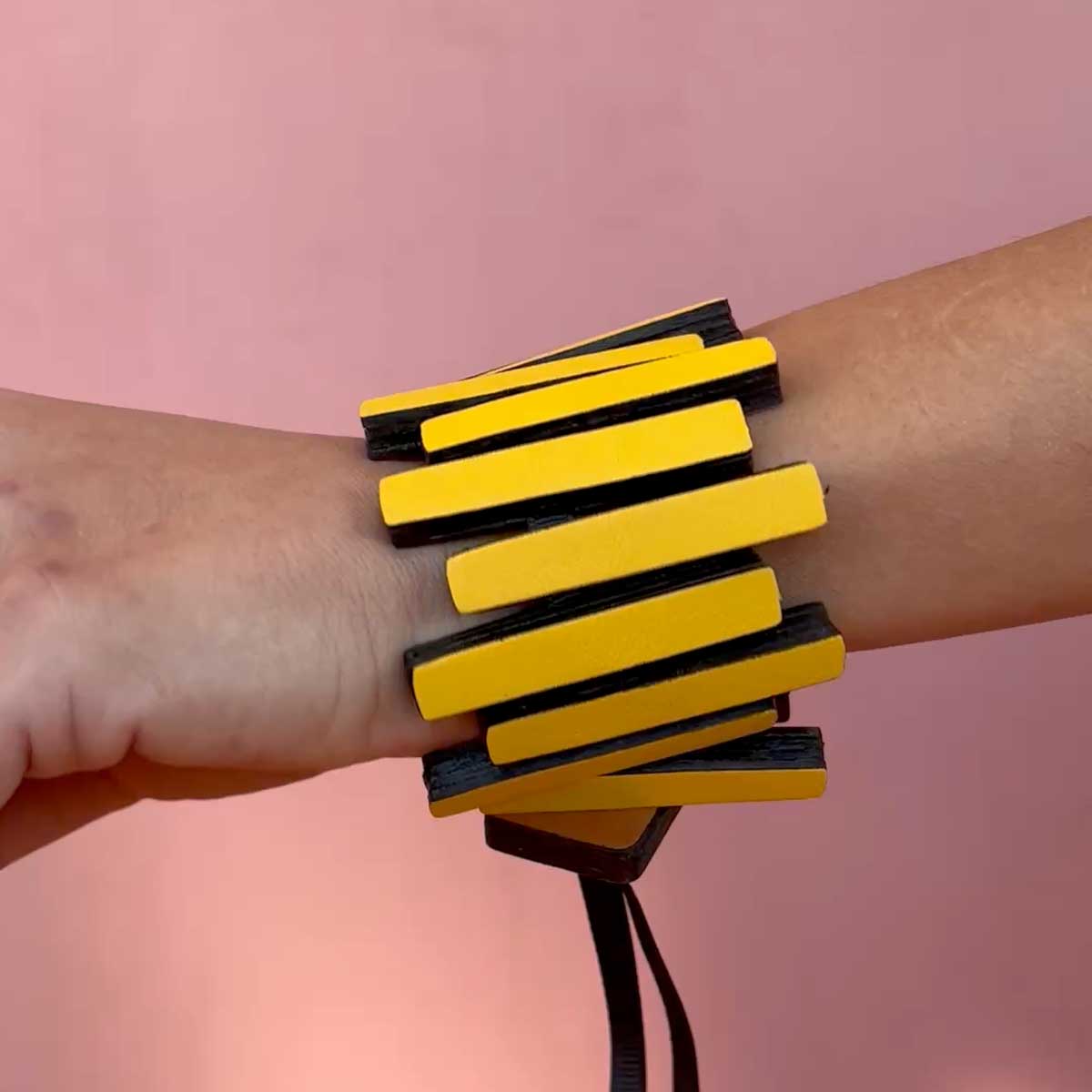 Gioiello artigianale in pelle di recupero, leggero e originale. Ogni pezzo è irripetibile: eventuali variazioni di colore e texture sono parte della sua unicità.