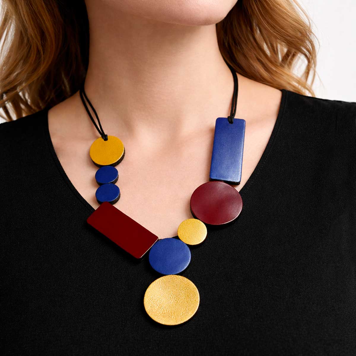 Gioiello artigianale in pelle di recupero, leggero e originale. Ogni pezzo è irripetibile: eventuali variazioni di colore e texture sono parte della sua unicità.