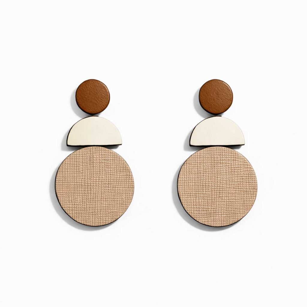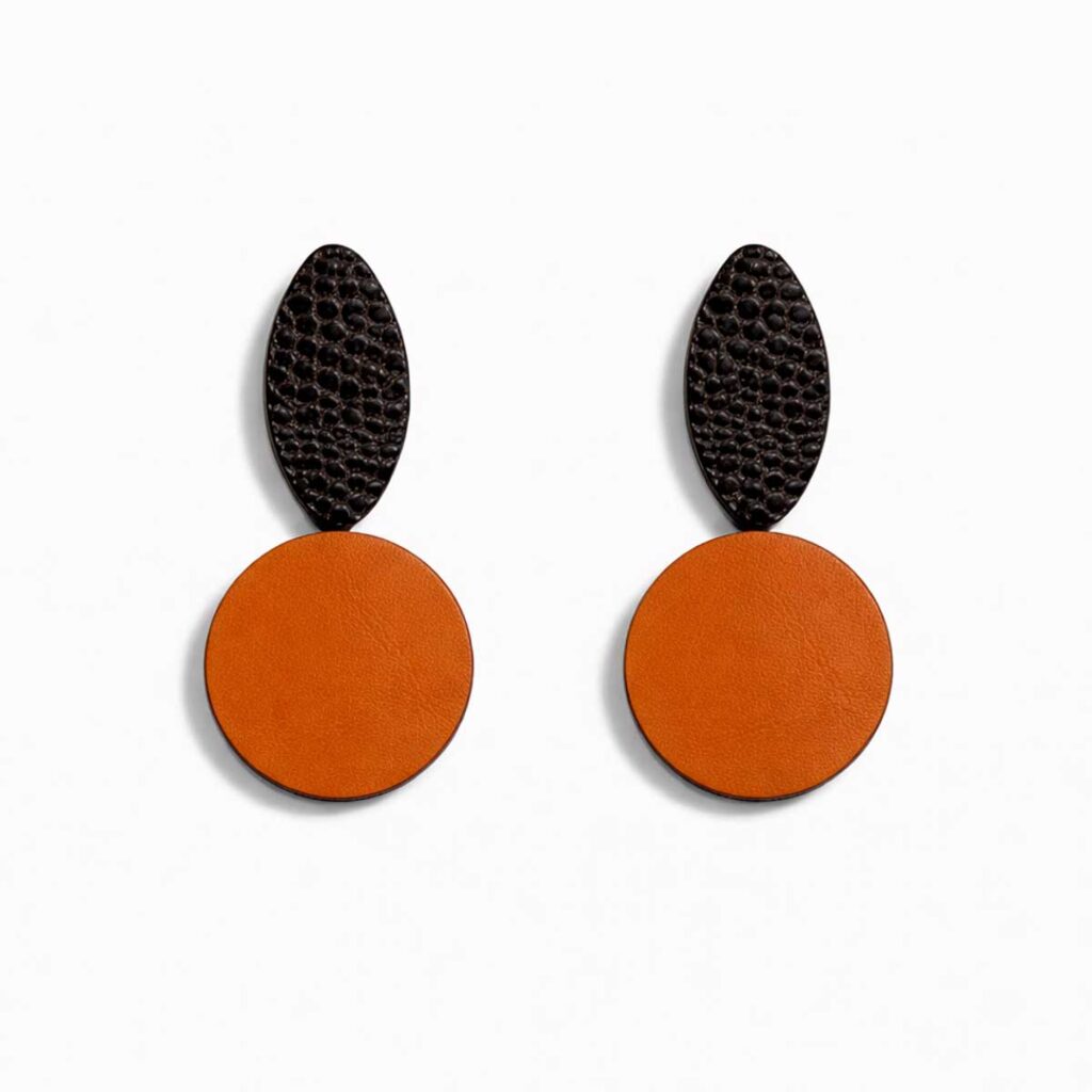 Gioiello artigianale in pelle di recupero, leggero e originale. Ogni pezzo è irripetibile: eventuali variazioni di colore e texture sono parte della sua unicità.